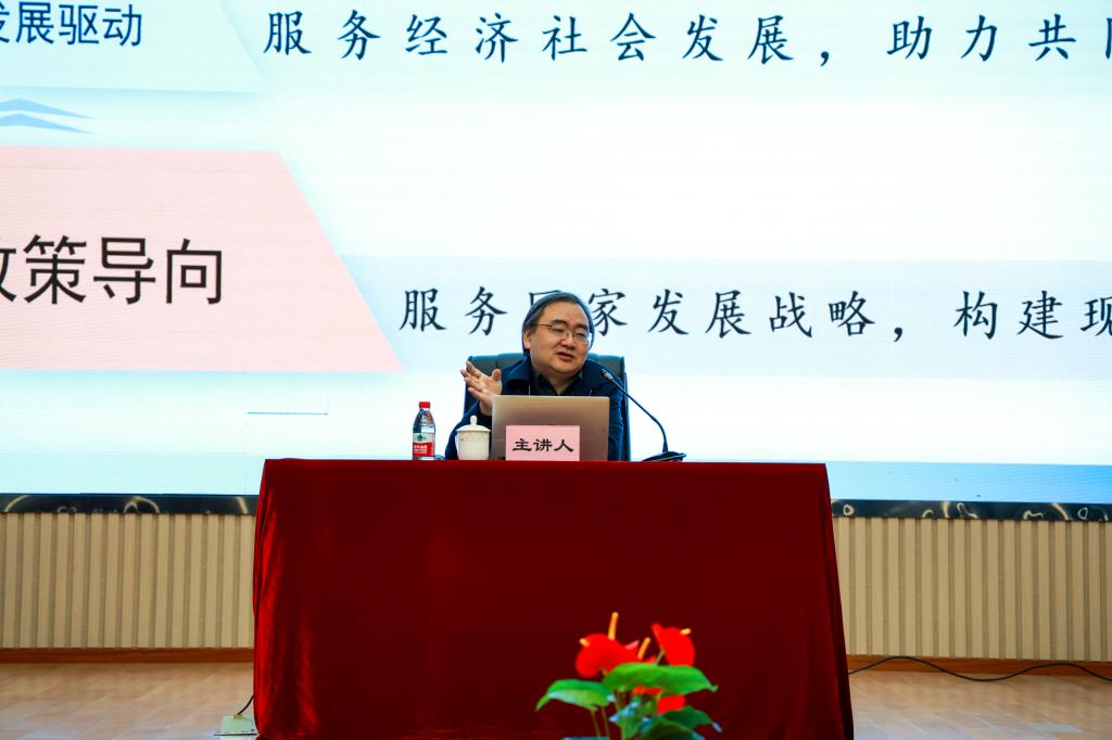 在主旨报告环节,特邀专家崔陵以《浙江职业教育一体化人才培养标准的研制与实践》为题,从时代背景、标准研制、标准制定、标准实践等四个方面,全面阐述了浙江省职业教育高质量发展趋势,为中高职一体化高质量发展提供明确的方向和参考。