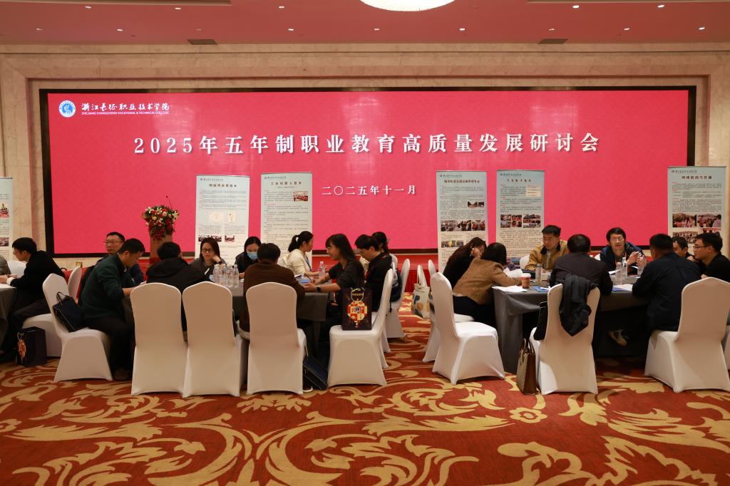 11月6日,学校2025年五年制职业教育高质量发展研讨会在第一报告厅召开。浙江省教育厅职成教教研室主任、浙江省教育科学研究院职教所所长崔陵,学校党委书记、常务副校长王其军,副校长冯新红出席会议,学校各二级学院及相关职能部门负责人、70所合作中职学校校领导等300余人参加会议。会议由冯新红主持。