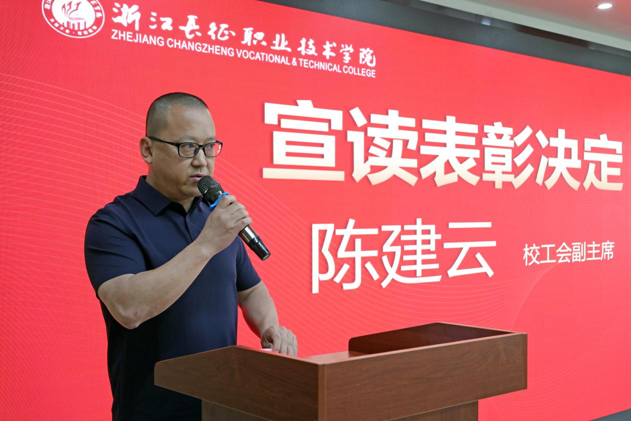 会上,校工会副主席陈建云宣读了表彰决定,并举行颁奖仪式。会议对“2026年新年教职工联欢会”优秀节目获奖单位进行了表彰,基础部分工会获“最具人气奖”,卫生与健康学院分工会、学生处团委分工会获“最具创意奖”,计算机与信息技术学院分工会、人文与管理学院分工会获“最具表现力奖”,建筑工程学院分工会、行政第二分工会获“最具活力奖”。随后,大会依次为2025年度工会先进个人、优秀工会干部和先进集体颁奖,受表彰代表依次上台领奖。
